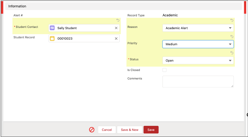 - Academic Alert - An all-purpose alert for any advisor to use.